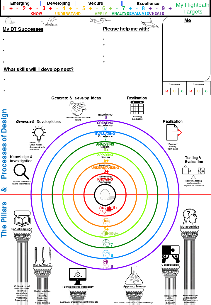 - Depth of engagement and rate of pupil progress is measured against design-focused higher order thinking skills. (Bloom, Anderson, et al)