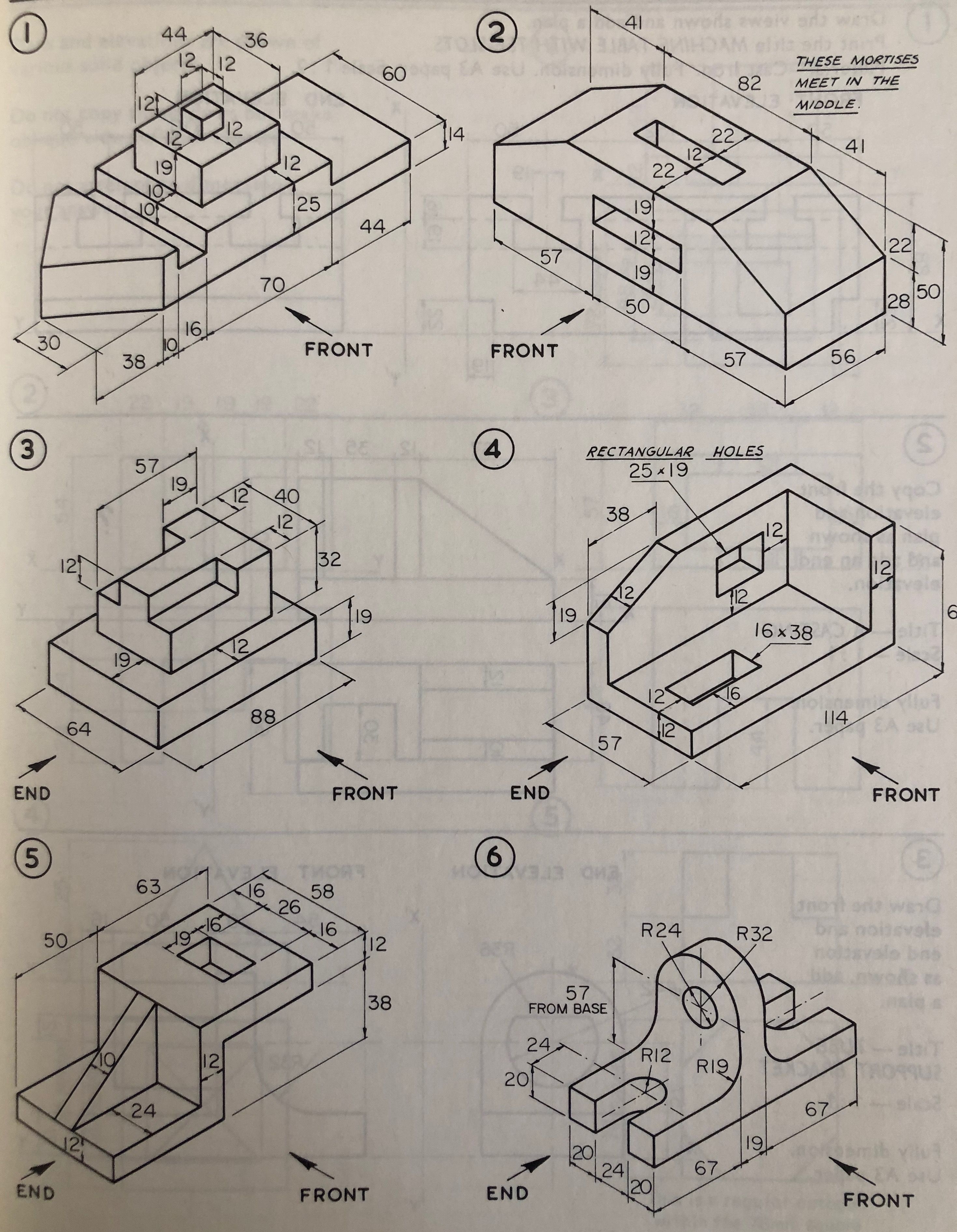 Where several parts go together make an assembly drawing.